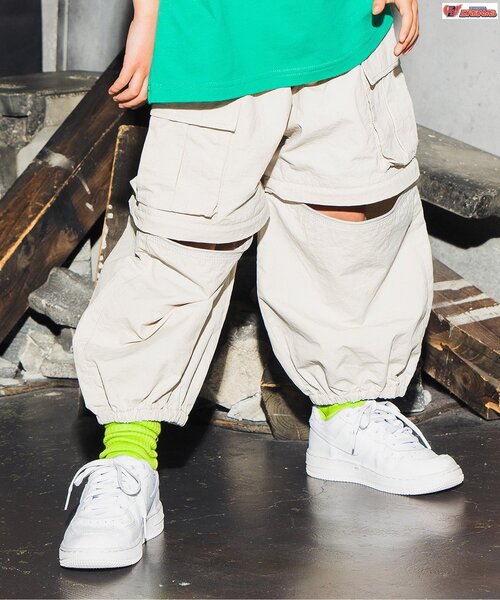 【KADOKAWA DREAMS×BREEZE】 ダンスチームのKADOKAWA DREAMSとのコラボアイテムが登場! ビッグシルエットのカーゴパンツ。 ひざ部分のチャックを開けると、コーデのポイントにもなるひざ出しスタイルに! チャックを全部外すとショートパンツとしても着用可能◎ パンツと同じく、ビッグシルエットのTシャツを合わせたり、ソックスインでトレンドの着こなしもGOOD! ※160cmはWEB限定サイズです。 【取り扱い表示】 40℃を上限に洗濯機で洗濯、漂白剤を使用禁止、色物は同系の色と一緒、洗濯後直ちに取出し、低タンブル乾燥機を使用、日陰で吊り干し、低温でアイロン、商業ドライクリーニング不可 ※商品により多少の誤差が生じる事がございます。あらかじめご了承下さい。 ※ご使用のパソコンやブラウザの環境により、実際の色とは多少異なる場合がございます。 ※モデル着用写真についてはイメージの為、実際の商品とカラーや仕様が異なる場合がございますので、商品画像をご覧ください。 【 BREEZE -ブリーズ- 】 WEAR A HAPPY SMILE こだわりと遊び心のつまった、着ると「笑顔」のWEAR、「着たい」がいっぱいのSHOP そんなHAPPY SMILEに出会える場所がBREEZE ストリート ダンススタイル スポーティー ストリートキッズ 2WAYパンツ