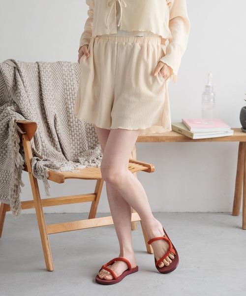 ■素材■ 水着としてプールでもビーチでも着用できる楊柳素材。 耐塩素、UVカット(チャコール UPF50+・アイボリーUPF40 遮蔽率はどちらも90%以上)の機能付きで 楊柳素材ならではの軽く柔らかい素材感を生かしたハイブリット素材になっています。 ■スタイリング■ 同素材のトップスオーシャンパシフィック/ラッシュヨウリュウリボンとセットでのスタイリングがオススメです。