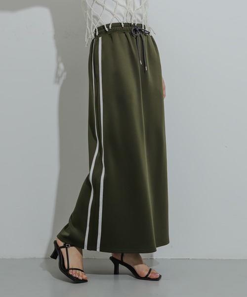 ラメのサイドラインが映えるスカート 〇肌触りが良く、伸びる素材を使用したストレートシルエット 〇ウエストは総ゴムになっていてストレスフリーな履き心地。 〇スポーティーな配色ラインにラメをアクセントにプラス styling カジュアルスタイリングにはプリントTシャツも合いますが、今年っぽさを出すのであれば、チュールのトップスを合わせるのがマスト! 【2024 Spring/Summer】【24SS】 ※この商品は素材の特性上、汗・水・摩擦等により色落ち・色移りをする恐れがあります。 ※色の特性上、直射日光や蛍光灯に長時間あてますと変色する恐れがございます。ご着用や保管の際は、充分ご注意ください。 ※その他お取り扱いに関しましては、商品に付属のアテンションタグをご覧ください。 ※商品画像は、光の当たり具合やパソコンなどの閲覧環境により、実際の色味と異なって見える場合がございます。予めご了承ください。 ※商品の色味の目安は、商品単体の画像をご参照ください。 ▼お気に入り登録のおすすめ▼ お気に入り登録商品は、マイページにて現在の価格情報や在庫状況の確認が可能です。 お買い物リストの管理に是非ご利用下さい。 素材感 透け感 : なし 伸縮性 : あり 裏地 : なし 光沢 : ややあり ポケット : あり