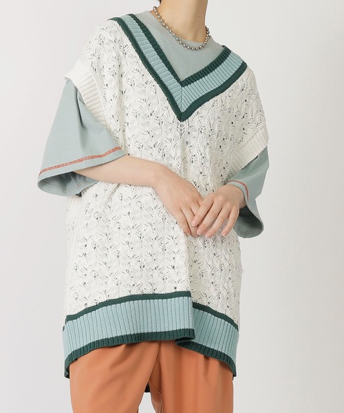 ■デザイン 【ユニセックス着用可能】 トレンドのスポーツmixな配色ラインがPOINTのニットベスト! ベースの編地も凝っていて無地TEEに合わせても一枚で存在感あり◎ ベーシックにシャツで合わせたり、BIG TEEでずるっと合わせがおすすめ! 配色デザインがおしゃれで、いつものコーデにプラスでおしゃれ感もグッと上がります♪ ※ハンガーではなくたたみでの収納をおすすめします‥! ■素材 ・伸縮性:なし ・透け感:あり ・裏地:なし ・光沢感:なし ・生地の厚み:薄い ※生地寄りの画像が実際の色味と近いものとなります。 ※ご覧のモニター環境や撮影環境により実際のカラーと異なる場合がございますので 画像をご参照の上、ご了承頂けますようお願い致します。
