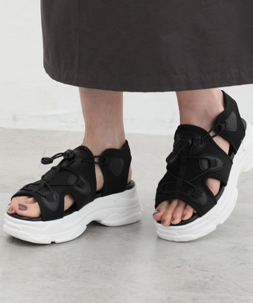 シューズライクに履ける【デザイン】コード使いがトレンドライクなアクセント。高低差の少ないプラットフォームのソールで、厚底でも歩きやすく安定感も◎【素材・機能】伸縮性のある柔らかな素材に、フィット感を微調整できるコード付き。【スタイル】カジュアルスタイルはもちろん、スカートやワンピースと合わせたミックススタイルにも好相性。デイリーからアウトドアまで大活躍。※靴のサイズ及び重量は全て婦人物について23cmまたはMサイズを基準としております。※靴のデザイン性やお客様の足の形により、対応サイズと合わない場合がございます。※湿度・摩擦により多少色落ちする可能性があります。【お断り】一度ご使用になられた靴の返品・交換はお受けできません。(不良品は除外)品番:235-134-8710