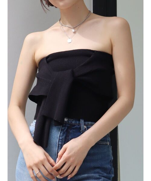 【クロップド丈】■商品ポイント・トレンドのリボンデザイン・サマーニット/サマービスチェ・春や秋はシャツとのレイヤードもオススメ○・うしろゴムありで安定感◎■商品についてEVRIS定番のリボンニットベアビスチェが再登場。胸元で結ぶ大きいリボンが目を引くデザインとなっています。伸縮性の高い素材を使用し、後ろ身頃の上端にはゴムも入っているため安心して着用いただけます。--------------透け感:なし裏地:なし生地の厚み:普通よりしっかり伸縮性:ありうしろゴムあり-------------