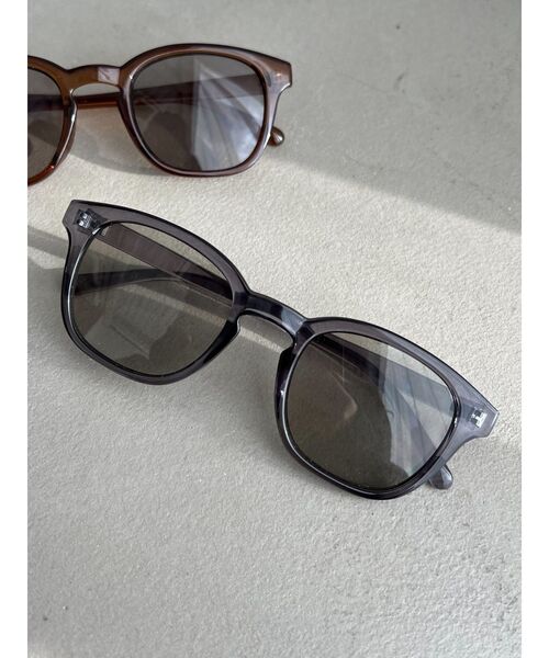 四角形のフレームで普段使いしやすいサングラスです。 程よいサイズ感でつけやすく、透け感のあるレンズとフレームで、 かけるだけで春夏らしい雰囲気が出るアイテムです。 ※着用画像はフラッシュの加減で実際の製品と色味等が異なる場合が ございます。※詳細画像をご参照ください。 ※ご利用の端末画面の設定により実際の商品と色味が異なる場合がございます。