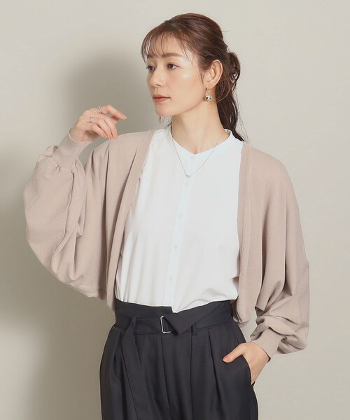 【デザイン】 ~嬉しい機能付き素材~ ・毛玉になりにくいアンチピリング機能で毎日ヘビロテ ・UVカット機能で夏の日差し対策にお勧め 今シーズントレンドのボレロカーディガン。 ワンピースとの相性抜群で、短丈デザインでスタイルアップ効果にも期待◎ さらりとした肌触りのハイゲージニットでこれからの時期にぴったりの素材感。 寒暖差対策や日焼け防止のレスキューアイテムとしてもお勧めです。 ドルマンスリーブでゆったりとした腕周りなので、インナーを選ばないのも嬉しいポイント。 ベーシックカラーはオケージョンシーンでも活用いただけます。 【素材】 さらりとした肌触りのハイゲージニット素材。 ※この製品は、太陽光線中の紫外線(UV)を通しにくくします。この効果は永久的ではありません。 ※照明の関係により、実際よりも色味が違って見える場合があります。また、パソコン・スマートフォンなどの環境により、若干製品と画像のカラーが異なる場合もございます。 モデル情報:身長171cm B80 W59 H88 着用サイズ:00(フリーサイズ) 店舗へのお問い合わせ商品番号:P93-38010 ●製品寸法: 00(フリーサイズ):着丈47cm B156cm 裄丈76cm 備考: