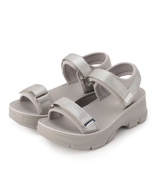【デザイン】 光沢あるテープ使いがスポーティーな、スポーツサンダル。 甲部分もかかと部分も面ファスナーで多少の調節が可能。 ふかふかの中敷きクッションが歩行時の衝撃をやわらげ、屈曲の良いソールが歩行をサポートし疲れにくい仕様です。 【カラー】 シルバー(006)・・・ テープ部分はシルバー、本体はグレージュ ブラック(019)・・・ テープ部分、本体共にブラック 新色:シルバー(106)・・・ テープ部分はシルバー、本体はブラック 【サイズ】 35・・・目安23.0cm-24.0cm(※靴底にMの印字あり) 45・・・目安24.5cm-25.5cm やや大きめ) (※靴底にLLの印字あり) ※こちらの商品は箱無しで発送いたします。あらかじめご了承ください。 店舗へのお問い合わせ商品番号:C70-18013 ●製品寸法: 35(23.5cm):ヒール高4cm 幅9.5cm プラットフォーム2.5cm 45(24.5cm):ヒール高4cm 幅9.7cm プラットフォーム2.5cm 備考:重量:45(24.5cm)片足約290g