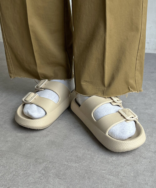 どんなカジュアルコーデにも相性◎ EVA素材の軽量サンダル 【POINT】 ・単色で合わせやすい、定番のベルトサンダル ・ソールのグリップ力で雨天にも対応。 ・水洗いでのお手入れが可能です。 ※生産の都合上、お届け時期が前後する場合がございます。ご注文いただいた予約商品のお届け時期の確認は、注文履歴ページより行えます。 ※お色物は色移りする可能性がございます。着用、お取り扱いは商品についておりますアテンションタグを必ずご確認ください。 ※商品画像はサンプル品を使用しているため、実際の商品と仕様、加工、サイズが若干異なる場合がございます。また、可能な限り実物に近いカラーにて掲載していますが、使用しているパソコンのモニター設定や、 携帯電話のメーカー・機種により実際のカラーと異なって見える場合がございます。予めご了承ください。