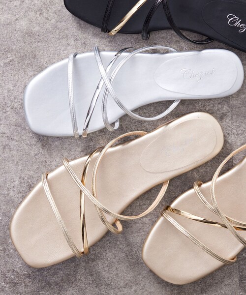 フラットで履きやすいのに異素材ラインがきれいめに履ける大人サンダル■point華奢なラインが足元を綺麗な印象に見せてくれるフラットサンダル。メタリックのラインも入れ込み更に上品さをプラスしました。フラットヒールなので歩きやすく疲れにくく、脱ぎ履きがさっとしやすいのも嬉しいポイント。■coordinateカジュアルにデニムやパンツ、フェミニンなスカートやワンピースまで幅広くコーデに合わせていただけます。■fabric合成皮革 --------------------------------------------------【キーワード】 #体型カバー #着痩せ #大人カジュアル #お出かけ #ママコーデ #シンプル #プチプラ #女子会 #高見えこーで #リラックス #デート--------------------------------------------------※商品画像は着用イメージです。光や角度により、実物と色味が異なる場合がございます。また表示のサイズ感も実物とは若干異なる場合もございますので、ご了承ください。※着用、お取り扱いの際は、商品についている品質表示とアテンションタグを必ずご確認ください。--------------------------------------------------♡をクリックでお得な情報をお知らせいたします。<商品お気に入り登録>お気に入りアイテムのお値下げ・再入荷・在庫ラスト1点など通知を受けることができます。<ブランドお気に入り登録>Chez toiの新商品・再入荷・SALE・クーポン配布などお得な情報を受けることができます。--------------------------------------------------Cheztoi/シェトワフランス語で「あなたの家」という意味。自分にまっすぐでそしてしなやかに生きる女性に向けたブランドです。
