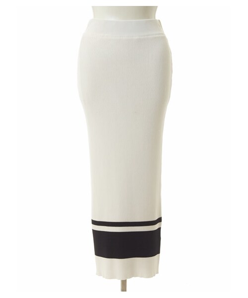 ドライタッチのレーヨン糸で仕上げた、リブニットタイトスカート。裾にイレギュラーなボーダー配色を施し、ポイントのあるデザインに。身体にピッタリとフィットするミディレングスのスカートはIラインを強調し、縦長ラインを演出してくれます。ウエストゴム仕様なので、リラックスムードで履きこなせるのもポイント。※サンプル撮影のため画像と若干ディテールが異なる場合がございます、ご了承下さい。