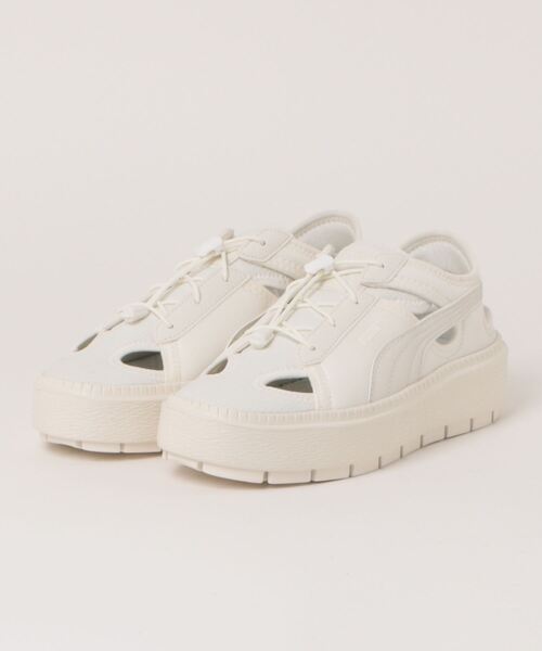 ■【PUMA/プーマ】プラットフォームレースライトミュール長年愛されるバスケットシリーズをベースに、プラットフォームトレースのデザインを活かしたライトミュールスニーカーです。ボリューミーなルックスがインパクトを与える厚底ミッドソールには、軽量かつ快適なクッション性を備えたProfoam素材を採用。通気性の高いメッシュ生地や、足元に心地よくフィットする柔らかなネオプレーン素材を取り入れたアッパーも見逃せないポイントです。軽快な履き心地とデザインが魅力的。シンプルでスタイリッシュなデザインは、様々なコーディネートに合わせやすいアイテムです。・重量:約306g(24cm)・ミュールデザイン・ネオプレーン素材とメッシュ生地のアッパー・サイドにフォームストリップ・シュータンにブランドロゴラベル・厚底ミッドソール・ラバーアウトソール・シューレースはゴムストラップ仕様