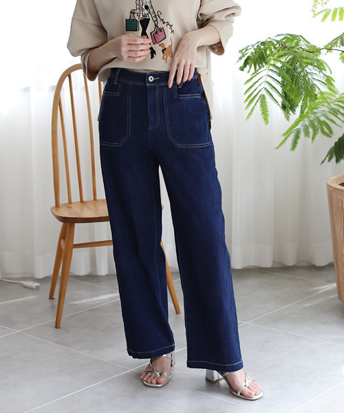 前モモ、ヒップもゆったりめ!M・Lのサイズ展開です。 ストレッチがよく効いており、薄手で目が詰まっている「きれいめ」に使えるデニムです。 [サイズ(cm)] M:総丈95 ウエスト(後ろウエストゴム)70 ヒップ93 股上31 股下65.5 L:総丈98 ウエスト(後ろウエストゴム)73 ヒップ96 股上33 股下65.5 [お手入れ方法] 手洗いにてお手入れしてください。