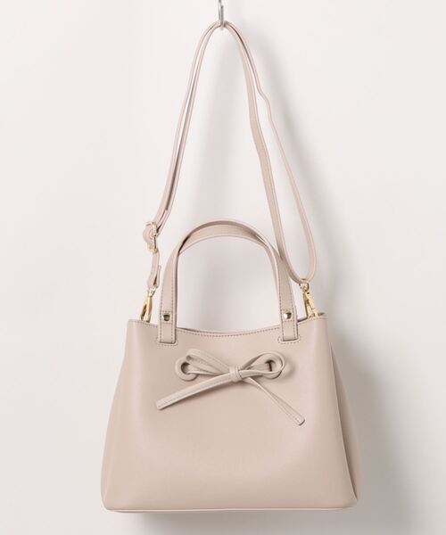 リボンディテールが可愛らしいトートバッグです。小ぶりなサイズ感ながらも、中は3部屋に仕切られた便利なデザインで、中央のファスナー部分には、貴重品や鍵、スマートフォンなどがきちんと収納できます。キレイめもカジュアルな着こなしにも合わせやすくてオススメです。肩掛けできるショルダーは取り外し可能。