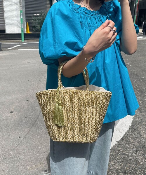 ◇fredy emue◇【2024 SS】 大人っぽいメタリックがポイントのカゴバッグ●point・メタリックフィルムとペーパーMIXの落ち着いた雰囲気のカゴバッグです・メタリックの程よい煌めきが上品な印象で繊細なタッセルが付いた大人っぽいデザイン!・どんなコーディネートにも合わせやすい素材感のカゴバッグです・シンプルなバケツシルエットの持ちやすいサイズ感で内ポケット付きなので収納力も抜群◎・口元は巾着仕様になっており、安心してお使いいただけます・デニムを履いたカジュアルなスタイリングから、ワンピースを着たレディなスタイルまで幅広く似合うアイテムです《収納の目安》・500mlペットボトル・長財布・日傘・スマートフォン・ポーチ●お取扱い上のご注意●*アテンションタグを必ずご確認の上、着用又はお取り扱い下さい。*店頭及び屋外での撮影画像は、光の当たり具合で色味が違って見える場合があります。商品の色味は、スタジオ撮影の画像をご参照下さい。*商品画像に関しては出来る限り忠実に表示出来るよう努めておりますが、お客様がご利用のモニターの設定及び特性により、実際の商品と比較し色味に若干の誤差が生じる場合があります。◇商品のお気に入り登録◇【お気に入りに登録 ♡マークをクリック】を是非ご活用ください! 再入荷の通知や、ラスト1点の通知、セールの通知がいち早く届きます。◇ブランドのお気に入り登録◇新商品や再入荷など、いち早くブランドのお得情報が届きます。