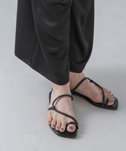 NANO universe(ナノ・ユニバース)『上品な煌めきを添えるラインストーン』肌面積の多いヌーディーなルックスが、抜け感たっぷりのフラットサンダル。キラキラしたラインストーンのディテールが、アクセサリーのような華やぎを演出します。シンプルなのでカジュアルからキレイ目まで幅広いスタイルに合わせられるのも魅力的。重く見えがちなロング丈のボトムに合わせるだけで、女性らしさが高まる逸品です。―DETAIL―・肌面積の多いヌーディーなルックスが、抜け感たっぷりのサンダル・アクセサリーのような華やぎを添えるキラキラしたラインストーン・カジュアルからキレイ目まで幅広いスタイルにマッチ・スタイリングのアクセントになるプラスワンアイテム・歩きやすく疲れにくいフラットソール【対応サイズ】【36】22.5cm【37】23.5cm【38】24.5cm■取り扱い方法エスカレーター、自動ドア等、本品が巻き込まれやすい場所での着用は十分ご注意ください。火気付近、または高温になる場所での着用、保管はおやめください。変形の恐れがあります。濡れた路面、凍結路面、マンホール、タイル床等では転倒の危険がありますのでご注意ください。通常の用途以外でのご利用は商品破損の原因となりますのでお控えください。乾燥はタオルドライまたは陰干しして下さい。変形の恐れがあるため、ストーブやドライヤーなど高温になるものに近づけると機能の低下を招くほか、膨張・破裂の恐れがあります。▼商品のお気に入り登録お気に入りアイテムの再入荷や残り1点の通知を受け取ることができます。▼ブランドのお気に入り登録新作アイテムの入荷や人気アイテムの再入荷、タイムセールやクーポンなど、いち早くブランドのお得な情報を受け取ることができます。※サンプルにて撮影、採寸を行う為、実際にお届けする商品と仕様やサイズが異なる場合がございます。予約時は生産の都合上、お届け予定時期が前後する場合もございますので、予めご了承下さい。