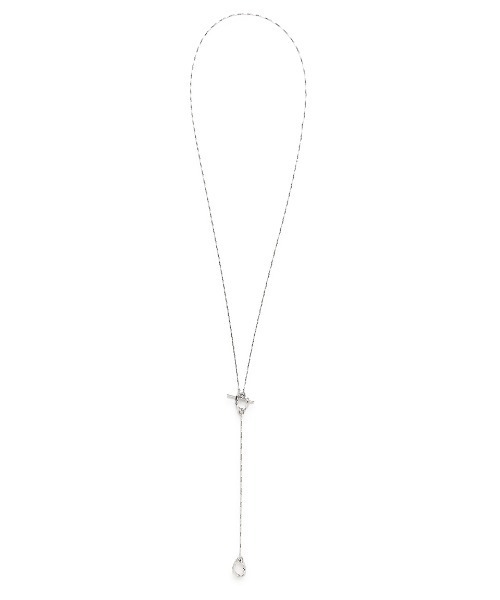 【長さやデザインを自分好みにアレンジできる、5wayのリングネックレス】【Design/Styling】動くたびに煌めく華奢なスネークチェーンのネックレス。2つセットされたリングパーツにTストラップを様々な方法で通すことで、5wayで使えるデザインに。1つ目はシンプルなロングネックレス。2つ目はY字ネックレス。3つ目はY字の状態で前後を逆にして背中にチェーンを垂らすバックネックレス。4つ目は垂れるチェーンを長くしたY字ネックレス。5つ目は2連風のショートネックレス。コーディネートに合わせてベストなバランスで着用でき、フレキシブルに活躍してくれます。軽やかな付け心地もうれしいポイント。オフィスカジュアルや会食、お出かけ、デートなど、様々なシーンに。シーズンレスで使いやすいSLVとGLDの2色展開です。※照明の関係により、実際よりも色味が違って見える場合があります。またパソコン・スマートフォンなどの環境により、若干製品と画像のカラーが異なる場合もございます。予めご了承ください。商品の色味は、商品単品画像をご参照下さい。 ※商品画像はサンプルのため、色味やサイズ等の仕様に変更がある場合がございますので、予めご了承ください。