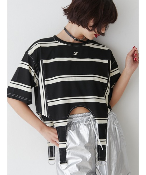 【ポイント】ガーターデザインとスポーティーな切り替えがポイントのTシャツ!!1枚でトレンド感MAXなコーディネートが完成します。ボーダー柄や、配色ステッチがjouetieらしい!!スタイルが良く見える丈感とシルエットもポイントです。【スタイリング】シンプルなボトムもガーターTシャツを合わせるだけでオシャレに見えます!どんなボトムにも合わせやすい身幅が広めのデザインです。カジュアルなボトムス合わせはもちろん、レーススカートと合わせたカジュアル×ガーリーなスタイリングもおすすめです!!【商品特徴】透け感:なし伸縮性:あり生地の厚さ:普通サイズ感:ゆったり裏地:なしポケット:なし ※着用画像はフラッシュの加減で実際の製品と色味等が異なる場合がございますので、生地のズームアップ画像をご確認ください。 ※ご利用の端末画面の設定により実際の商品と色味が異なる場合がございます。 ※正しいサイズはアイテムサイズ表をご確認ください。 ※商品のお取り扱いについては、脇についている洗濯ネーム類をご確認下さい。【jouetie ZOZOTOWN お買い物ガイド】▼商品をお気に入り登録!♡をクリック!完売商品の再入荷やラスト1点の通知、セール開始時にお知らせ!▼"jouetie(ジュエティ)"をお気に入りブランドに登録!新商品や再入荷など、ブランド最新情報をいち早くお知らせ!