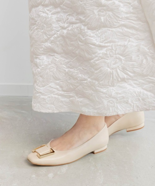 ◆2024SS新商品◆ インパクトのあるゴールドパーツが目を惹くスクエアトゥパンプス。 きっちり感がありながらも、ラフなフラットヒールで程よい抜け感も演出。 デイリー使いにはもちろん、通勤コーデにも使える汎用性の高い1足です。 POINT ・目を惹く大きめのゴールドパーツ ・足を綺麗に見せてくれる履き口周り ・合わせやすいベーシックなカラー展開 ・歩きやすいフラットヒール ・すっきりとした上品なスクエアトゥ スタッフの着用コメント ----------------------------- スタッフL [普段のサイズ:Mサイズ/23cm] 足長:23cm / 足幅:普通(E) / 甲高:普通 サイズ選びのポイント:ぴったりめを選びます 【試着サイズ】23cm/素足で着用 【サイズ感】23cmでぴったりでした。 【着用コメント】ホールド感があります。 ----------------------------- スタッフR [普段のサイズ:Mサイズ/23.5cm] 足長:23.5cm / 足幅:普通(E) / 甲高:普通 サイズ選びのポイント:ぴったりめを選びます 【試着サイズ】23.5cm/素足で着用 【サイズ感】23.5cmでぴったりでした。 【着用コメント】クッション性があり疲れにくそうです。 ----------------------------- スタッフY [普段のサイズ:Lサイズ/24cm] 足長:24cm / 足幅:普通(E) / 甲高:普通 サイズ選びのポイント:ゆったりめを選びます 【試着サイズ】24cm/素足で着用 【サイズ感】24cmでぴったりでした。 【着用コメント】足にフィットして歩きやすいです。 ----------------------------- スタッフI [普段のサイズ:LLサイズ/25cm] 足長:25cm / 足幅:狭め(D) / 甲高:高め サイズ選びのポイント:甲が高いのでゆったりめを選びます 【試着サイズ】25cm/素足で着用 【サイズ感】25cmでぴったりでした。 【着用コメント】甲が深めなので脱げにくいです。 -----------------------------
