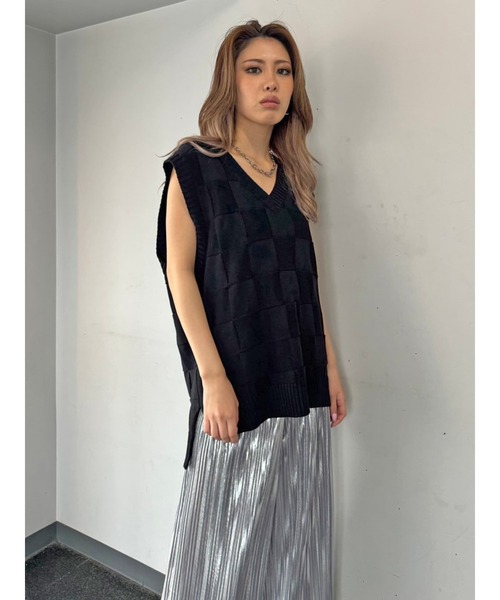 【商品説明】 ■detail 生地を表裏交互に編み立てブロックチェックを表現した存在感のあるニットベスト。 着丈は前後差を付け、後ろはヒップが隠れる設定にしています。ゆったりなサイジングにアームホールを広くし、サイドにはスリットを入れて程良い抜け感のあるシルエットに仕上げました。ベストが主役となるのでシンプルなシャツやカットソーとのレイヤードコーデがおススメ。スウェットボトムスとも相性抜群です。MIXカラーはモードなストリートテイストでオシャレ感UP。 【生地感】 透け感:なし 裏地:なし 伸縮性:あり 生地の厚さ:普通