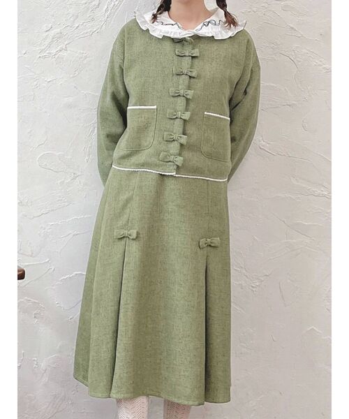 【セットアップ着用可能】 〇 セットアップ可能 〇 「リボンノーカラージャケット」 ブランド品番 282450100401 で検索! イチオシのコーデが簡単に完成します♡ ■デザイン トレンド感のある、ミディ丈のプリーツスカートは、 秋らしいカラバリが魅力的です。 スカートと共地のリボンがポイントです。 ■サイズ感 ウエストゴム仕様で、簡単に着脱できます。 ひざ丈なので身長を選ばず着用いただけます。 ■スタイリング ショート丈のトップスと合わせてリボンをアクセントにしたり、 セットアップとしてお揃いのジャケットを合わせた スタイリングもおすすめです。 ソックスにバレエシューズやローファー。 カジュアルにスニーカー合わせなどコーディネートの幅が広がります。 【商品情報】 透け感:なし 伸縮性:なし 光沢感:なし 生地の厚さ:ふつう 【商品のお気に入り登録】 ハートをクリック! 完売カラーの再入荷や、ラスト1点の通知、 セールの際の通知も受け取ることができます。