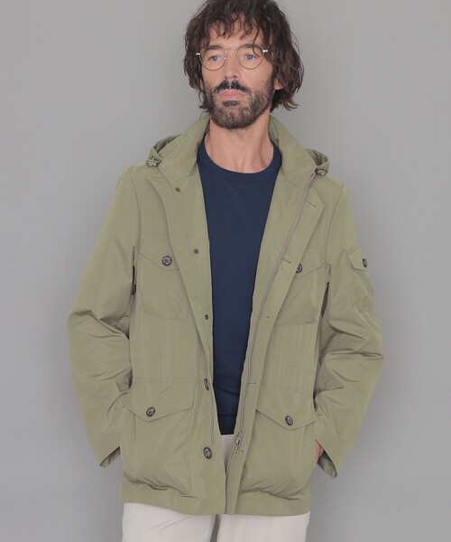 【はっ水】【着用推奨シーズン:春・秋】<素材>特殊な撚糸工程を経たマルチ構造のポリエステル糸は、高捲縮でふくらみがあり、優しい肌触りで柔らかい風合いが特徴です。また、軽量感もあり春先のアウターに最適な素材です。<デザイン>英国陸軍のミリタリーアウターをモチーフとした人気モデル『BERWICK(バーウィック)』です。コートの様にジャケットの上から羽織ったり、一枚でブルゾンとして着用できる汎用性の高いアウターウェアーです。フードは取り外し可能で、スタンド衿のアウターとしてもご着用頂けます。