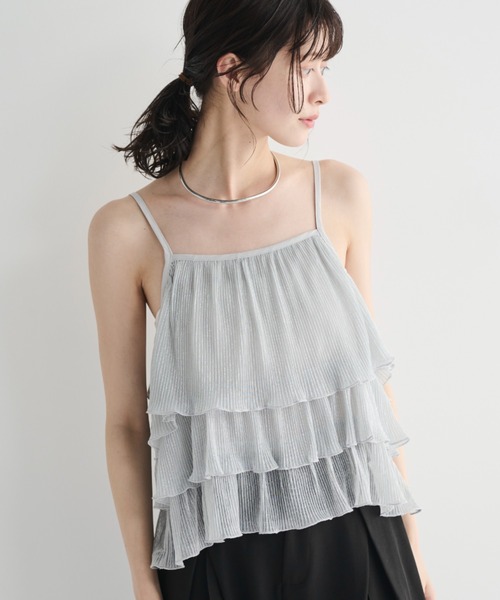 前後2wayで楽しめる、ティアードデザインのキャミソール。 ■ポイント ・表情豊かな細プリーツ加工 ・上品に揺れるティアードデザイン ・キラキラとしたラメで艶感を演出 ・前後2wayで着用可能 …………………… 透け感 : あり 厚さ:薄手 伸縮性:なし お手入れ方法:手洗い推奨 …………………… ■デザイン/素材 動くたびに揺れるティアードデザインに、細プリーツで豊かな表情がプラスされたキャミソール。 キラキラとしたラメが華やかさと上品な艶感を演出してくれます。 前後2wayで楽しめるデザイン。片面にはボタンが付いているので前後を変えるだけで違った印象に。 軽くて柔らかい生地なので広がりすぎず、着膨れの心配もありません。 ■スタイリング 華やかながら日常使いのしやすいアイテム。 程よいゆとりのあるサイズ感で、シャツやワンピースなどとのレイヤードスタイルにぴったりです。 Tシャツやデニムと合わせてカジュアルに。ブラウスやスラックス、シンプルなスカートでフェミニンにも。 ※ご注意※ ・屋外の光や照明の当たり具合で、実際の商品の色味と カラー別画像の色味に若干の違いが発生する場合がございます。 ・詳細画像と併せてご確認の上、ご注文いただきますようお願い致します。 【MERLOT】 ジャンルレス、ジェンダーレスをテーマにヴィンテージライクからモダンなアイテムまで幅広く展開。 メンズとレディース、カジュアルとモード。あらゆる境界を取り払うミックススタイルを提案します。 【商品のお気に入り登録】 完売カラーの再入荷通知やラスト1点の通知、プライスダウンの通知を受け取ることが出来ます。 【ブランドのお気に入り登録】 新商品や再入荷など、嬉しい情報を受け取る事が出来ます。 ぜひご登録ください◎