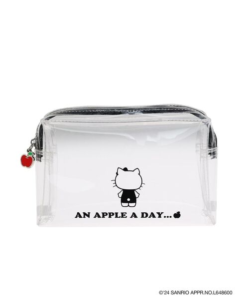 クリア素材を使用したコンパクトなサイズ感のポーチです。EMODAブラックとクリアのモノトーンなカラー展開。 ファスナーの引手には ハローキティ のリンゴモチーフを使用し、 オリジナリティを出しています。 コンパクトなサイズ感ですが、マチがあるため収納力にも優れています。 ちょっとした旅行などでも活躍するアイテムです。※着用画像はフラッシュの加減で実際の製品と色味等が異なる場合がございます。 ※ご利用の端末画面の設定により実際の商品と色味が異なる場合がございます。