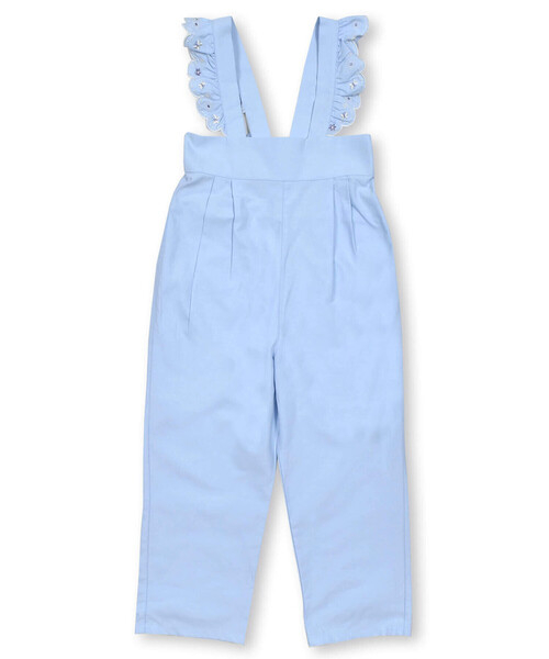 肩紐のフリルがキュートなサロペット。 身生地に使用している素材やフリルに入った刺しゅうはカラーごとに異なるのでどっちにしようか、悩めるアイテムです。 ネイビー:さりげないストライプが入ったレース生地。フリルの刺しゅうはお花に蝶々、さわやかなレモン! ブルー:ふんわり軽くやわらかな手触りのシャンブレー生地。フリルはお花と蝶々でとってもキュート◎ 刺しゅうの一部をラメ糸でほどこしているのでさりげなくキラッと輝くアクセントになっています。 後ろにはボタンで取り外せるリボンをオンして、バックスタイルも女の子らしさがいっぱいのデザインに仕上げました。 カジュアルになりがちなサロペットをSLAPSLIPらしくキュートにスタイルチェンジ◎ ボタンで肩紐の長さを調整できるので長く愛用できるのもうれしいポイント。 中にお気に入りのTシャツを合わせてカジュアルガーリーに着こなして今年の春夏をエンジョイしちゃお♪ ※80・90cmのみ股下にホックがございます。 ※後ろポケットあり 2024年春夏女の子アイテム。 【 2024年 4月のテーマ / must-have MIX 】 GWや夏に向けていよいよ本番! 楽しいお出かけや旅行の機会も増えて、ほしいものもたくさん! 手にしたいのは旬度の高いロマンティックカワイイアイテムがいいよね? 夏らしく清涼感のある素材なのにデザインはお出かけ仕様。 パッと明るくなじみやすいフレッシュで柔らかいカラーが◎ 太陽のあたたかな光を浴びてとろけだすようなミルキーイエローを取り入れて展開します。 【 2024 SPRING / SUMMER MIX MOOD 】 注目される自然との共存、拡大するデジタル世界・・・ 相反するものが共存してともに大きく成長して交差する時代。 お洋服だって様々なテイストが多様にMIXされて共存してもいいんじゃない? これだけって選ぶ必要はないはず! 好きなものを好きなだけ。 少しのスパイスをMIXすることでイマっぽい自分だけの服を。 【SLAP SLIP(スラップ スリップ)】 ~子どもの欲しいをカタチに~ ヨーロッパのこどものように 子どもらしい今しか着れないナチュラルなかわいさを提案 どこか上品で清楚感漂うフレンチカジュアルは いつものコーディネートをさりげなく格上げ ・洗濯:洗濯機使用可(ネット使用)