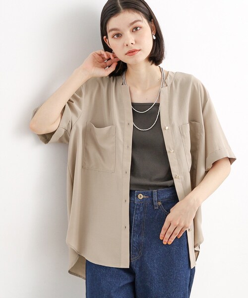 これからの季節にぴったり。魅せる体型カバー服新色3色入荷しました!要チェック!■ポイント/詳細スキッパーで、6分袖のゆったりシルエットシャツ。二の腕など気になる部分もカバーできるシルエット。Vネックできざみのデザインが入って顔回りがシャープに見えながら、ドロップショルダーで抜け感のあるデザインです。フロントの金ボタン使いが上品に見え、Wポケットのデザインもアクセントになっています。キレイめからデイリーまで幅広くお使いいただけるアイテムです。※ポケット数:前×2■素材/機能性ビンテージ加工を施した清涼感のある素材を使用しています。■おすすめコーディネートデニムでカジュアルにまとめたり、キレイめなワイドパンツでお出かけスタイルにも合わせたりと、カジュアル~キレイめまで幅広く合わせていただけます。フロントを開けてキャミワンピの羽織りなどにもお使いいただけます。※照明の関係により、実際よりも色味が違って見える場合があります。また、パソコン・スマートフォンなどの環境により、若干製品と画像のカラーが異なる場合もございます。モデル情報:身長163cm B80 W58 H87 着用サイズ:12(M)店舗へのお問い合わせ商品番号:040-88025●製品寸法:12(M):着丈70cm B114cm 袖丈24cm 肩幅46cm13(L):着丈71cm B117cm 袖丈24cm 肩幅47cm備考: