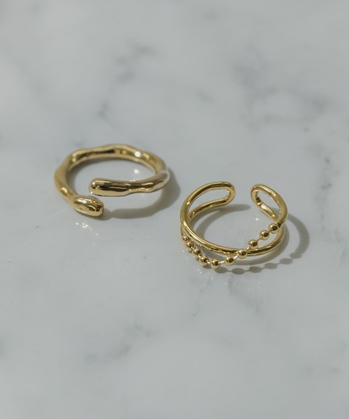 【好バランスなデザインの組み合わせ】●強弱の効いたリングのセット●リングの組み合わせに迷う方に●ゴールドメタルでレディーな手元を演出異なるのデザインに仕立てたリングの2セット。凹凸の効いたイビツさのあるリングは程よい太めのディテールで、緩やかにツイストしたルックスが特徴。華奢なリングにボールチェーンを施したリングは、落ち着いた印象ながら立体的なデザインがアクセントに。ニュアンスの効いた2リングは、デイリーだけでなくフォーマルな装いにもマッチします。【2024 Spring/Summer】【24SS】※金属アレルギー症状が出にくいチタン、ニッケルフリー素材、ステンレス等を使用しています。すべての方にアレルギーが起こらないということではありませんので、万が一アレルギーの症状が出ましたら直ちに使用を中止してください。※メッキ製品(特に銀メッキ)は変色しやすいため、こまめなお手入れで防止してください。長期放置やスプレー香料などの同時使用は、特にお避けください。※メッキ製品は、アレルギー体質の方や体調が低下している方など、かぶれることがあります。肌に異常を感じた時はご使用をお止めいただき専門医にご相談ください。※アクセサリーは壊れやすいものです。取り扱いに注意していただき大切にご使用いただけるようお願い申し上げます。サイズ : 11号, 13号(詳細商品画像の左から順に)総重量 : 約5.5g※商品画像は、光の当たり具合やパソコンなどの閲覧環境により、実際の色味と異なって見える場合がございます。予めご了承ください。※商品の色味の目安は、商品単体の画像をご参照ください。▼お気に入り登録のおすすめ▼お気に入り登録商品は、マイページにて現在の価格情報や在庫状況の確認が可能です。お買い物リストの管理に是非ご利用ください。