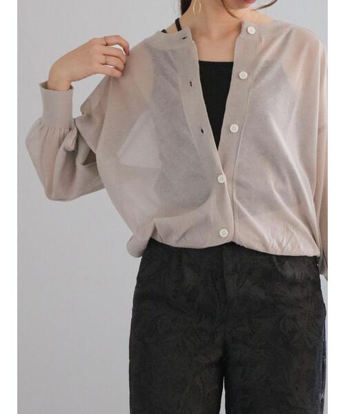 トレンドのシアー素材のクルーネックカーディガン。 人気のボリュームスリーブと程よくゆとりのあるシルエット感で、前を閉じて1枚着としての着こなしもおしゃれ見えする1枚です。 前後2way仕様。 ※商品画像は、撮影環境やお客様のご利用のPC・スマートフォンのモニター環境などにより実物と色味に差異がある場合がございます。