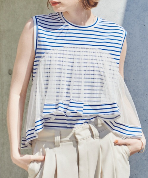 ー4/18(THU) Renewal openー 【desing】 カットソーにチュールがドッキングされた 1枚でレイヤードスタイルの叶うアイテム 程よいチュールのふわっと感がスタイルカバーにも◎ 【styling】 トップスにボリューム感が出るため スッキリとしたIラインスカート、タイトスカートや ウエストでメリハリのつくワイドパンツ合わせがおすすめ。 カットソー部分のみをインしたスタイルでウエスト周りをスッキリ見せるのも◎ カジュアルにデニムと合わせるだけでも、サマになる1枚。 ■concept■ vintage moodとcontrastをキーワードに 個性的なアイテムと旬なカジュアルアイテムをミックスさせた オリジナリティ溢れるスタイルをご提案いたします。 〈公式Instagram〉 @unitage__official ------------------------ 透け感/淡色ややあり 光沢感/なし 伸縮性/カットソー部分あり 裏 地/なし ------------------------ ※自宅洗濯可能(手洗い) 詳細は商品タグをご確認ください。 ※商品の写真はサンプル品を撮影しておりますため 実際の商品とは仕様や加工、サイズ等が若干異なる場合もございます。 ※屋外の光や照明の当たり具合で、実際の商品の色味とカラー別画像の色味に若干の違いが発生する場合がございます。 詳細画像と併せてご確認の上、ご注文いただきますようお願い致します。