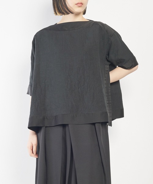 2024 SPRINGU&SUMMER COLLECTION ■design ・広い首回りが特徴的なブラウス。 ・左脇には深いスリットをデザイン。・浅めのボートネックで涼し気な印象に。 ・裾などにサテン生地をプラスし、シルエットを引き締めます。 ・身幅が広いため、ボディラインもカバーできます。 ■fabric ・柔らかな肌触りと通気性の高さが魅力的なテキスタイル。 ・上品な光沢感と、使い込むほどに風合いが増すことが特徴。 ■coordinate ・パンツとの相性◎ ・インナーにハイネックを合わせても◎ ‥‥‥‥‥‥‥‥‥‥‥‥‥‥‥‥ 厚さ:薄手 け感:なし 伸縮性:なし 光沢感:なし ポケット:なし 裏地:なし ※詳しいお手入れ方法は商品タグをご参照ください。 ‥‥‥‥‥‥‥‥‥‥‥‥‥‥‥‥ 《お知らせ》 ・商品画像はご覧のモニター環境により、実物の色味と多少異なる場合がございます。予めご了承ください。 ・「商品のお気に入り登録」で再入荷・値下げ・在庫1点などの通知を受け取ることができます。 ・「ブランドのお気に入り登録」で新商品や再入荷など、お得な情報を受け取ることができます。 ※他のキャンペーンにより、期間中に価格が変動する場合があります。 ※セールは予告なく終了させて頂く場合もあります。