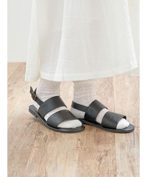 【S/XLサイズはWEB限定のみでの取り扱いとなります】 たくさんお声を頂いたので.... \みなさんの欲しい!を形にしました/ 現在WEB限定のみでの取り扱いとなりますが、 お声が多かった一部アイテムは、店舗でも取り扱いする可能性がございます。 【スタッフレビュー】 ■着用スタッフ1:普段サイズ22.5-23.0cm Sサイズは後ろのストラップの部分に少しゴムが入っているので、ゆとりをもって履けました! ストラップの穴は前から2番目に通しています。 買うならSサイズを買います◎ ■着用スタッフ2:24.0cm 普段Lサイズをよく履いているが、Mサイズがちょうどぴったりでした!横幅にもゆとりがあります。 ただ長さがぴったり過ぎたので、Lサイズの方が良さそう◎ Lサイズだと少しゆるいかな?という感じですが、靴下と合わせるとちょうどよさそうです。 Mサイズだと長さがぴったりすぎるので、長時間履くならLサイズの方が安心感があります。 ダブルベルトのデザインが足元に程よいフィット感を演出するサンダル。 ゴム仕様になっているので、簡単に着脱することができます。 フェイクレザーを使用した落ち着きのある雰囲気も魅力的◎ パンツスタイルと合わせたコーディネートがおすすめです。