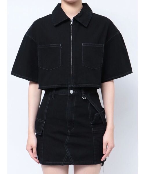 デニム生地を使用したファスナー開きの半袖シャツ■デザイン夏時季にも着やすい薄手の半袖シャツです。身頃と袖はゆったりとしたサイズ感で、ショート丈にしているのでバランスが取りやすいシルエットになっています。フロントファスナーで通常のシャツと違う雰囲気で着れ、パッチポケットが程よいカジュアル感をプラスしてくれます。■スタイリングアイスとブラックはオリジナルマークをレーザープリント入れた総柄で1枚でスタイリングのポイントになります。※画像は無地ですが、ブラックもアイス同様の柄に変更になります。ブラックとグレーは無地でインナーにモノトーン合わせは勿論、カラーアイテムとの相性も良いので着回しが効きます。ハングベルトデニムスカートと同素材・同色の展開でセットアップでの着用もおすすめです。※着用画像はフラッシュの加減で実際の製品と色味等が異なる場合がございます。※ご利用の端末画面の設定により実際の商品と色味が異なる場合がございます。【商品特徴】透け感:なし伸縮性:なし生地の厚さ:普通サイズ感:ゆったり裏地:なしポケット:あり【トクする便利機能】♡商品のお気に入り登録再入荷時、ラスト1点の時、セール開始時にお知らせします。♡ブランドのお気に入り登録新商品や再入荷、セール情報など、ブランドのお得な情報を受け取ることができます。是非ご活用ください!
