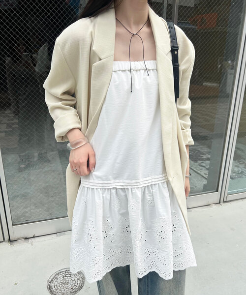 マルチに使える!裾のレースにもトキメクスカラップスカートが登場◎ 商品コメント ・スカートの切り替わり部分からはレースが施されています。 ・ふんわりとしたシルエットが女性らしさをプラス◎ ・OFFのカラーは、春夏らしいスタイリングに! ・ウエスト部分はゴム仕様になっているのでストレスフリーなのも嬉しいポイント! ・肩紐が付属でついています。 スタイリングポイント ・白のTシャツでワントーンコーデに◎ ・足元はスニーカーやサンダル合わせでもバランスよく着ていただけます! ・ベアトップとして着ていただくのも◎ ----------------------------------------------------- 裏地:あり 伸縮性:なし(ウエスト部分:あり) 光沢感:なし 生地の厚さ:うすめ ------------------------------------------------------ 商品のお気に入り登録➡ お気に入りアイテムの値下げ・再入荷・在庫1点などの通知を受け取ることができます。 ブランドのお気に入り登録➡ 新商品や再入荷、セール、クーポン配布などお得な情報を受け取ることができます。 ※サイト上のカラー名と、お届け商品に記載されているカラー名が異なる場合がございます。 ※商品の色味は、撮影場所や光のあたり具合などにより色味が違って見える場合が御座います 。 また、お客様のお使いのPCのモニター環境などにより色味が違って見える場合が御座います。予めご了承の上ご注文下さい。 ※ご注文いただいた予約商品のお届け時期の確認は、注文履歴ページより行えます。 ------------------------------------------------------