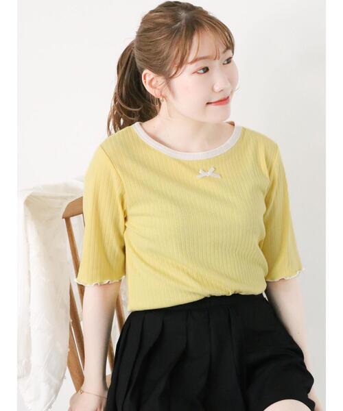 リボンのワンポイントと配色トリムがアクセントになったカットソー。 袖口と裾のメローなフリルも甘さをプラスするアクセントに。気になる二の腕も優しくカバー。 カジュアルにもキレイめにも、様々なスタイリングに活躍してくれるアイテムです。 ※商品画像は、撮影環境やお客様のご利用のPC・スマートフォンのモニター環境などにより実物と色味に差異がある場合がございます。
