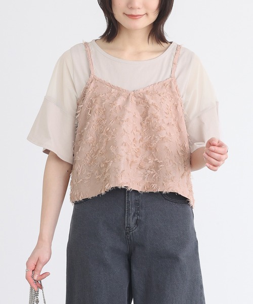 ■デザイン レイヤードして着回せるジャカード生地のキャミソール。バックの広めに開いたデザインと、ギャザーゴムで後ろから見てもお洒落な印象に見せます。肩紐はお好きな位置に調整可能です。 ■素材 程よい長さの毛羽立ちが表情のあるジャカード生地。薄めなのでさらっと軽く重ねられて、ロングシーズンで活躍します。 ■コーディネート Tシャツやシャツ・ワンピースなど、いつものコーデにプラスするだけでスタイルの幅が広がる重ね着アイテム。短め丈のシンプルなデザインで、ビスチェのようにどんなアイテムに合わせてもバランス良く決まります。