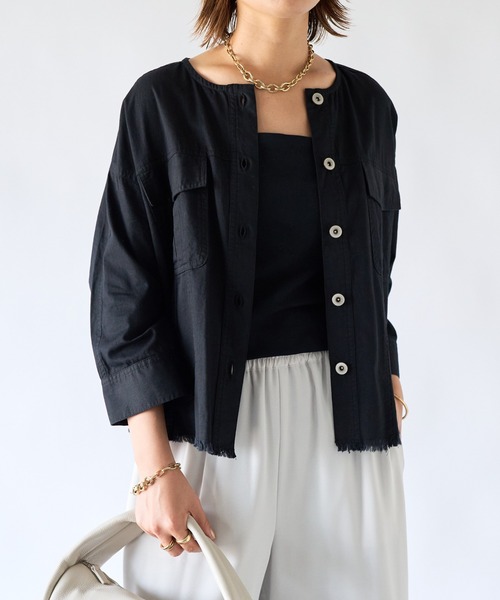 サッと羽織れて春夏で大活躍の一枚商品ポイント・シンプルなジャケットのように見えるノーカラーの薄手ジャケット・軽やかな素材だから、カーディガンのように気軽に羽織れて適度なキチンと感が嬉しい◎・着用しやすい素材なので、シャツのように通年使えるアイテムおすすめコーディネートカットソーとボトムのようなシンプルなワンツーコーデに重ねるだけで、オシャレ見えにキャミワンピースの上に羽織って抜け感のあるコーディネートもおすすめサマーコーデュロイパネルスカートとのセットアップも◎おすすめスタイリングアイテムサマーコーデュロイパネルスカートリラックスサロペット綿麻ストレッチデニムセミワイドパンツボーダーノースリカットソー素材綿100%洗濯方法:手洗い可透け感:なし裏地:なし伸縮性:ややあり生地の厚さ:やや薄手光沢:なしポケット:あり【スタッフ着用コメント】《RINO》身長:148cm/着用サイズ:F体型:普通/骨格:ストレート/パーソナルカラー :ブルベ冬同じカラー展開のスカートとのセットアップが楽しめる軽量薄手ジャケット♡ノースリアイテムの羽織にもぴったり!《KAREN》身長:162cm/着用サイズ:F体型:普通/骨格:ストレート/パーソナルカラー :イエベ春胸元の大きめのポケットがポイントになります。薄手なので夏の日除けの羽織としても活躍します。薄手なので夏の日除けの羽織としても活躍します。《あおい》身長:160cm/着用サイズ:F体型:普通/骨格:ウェーブ/パーソナルカラー :ブルべ冬コンパクトなサイズ感なので骨格ウェーブの私はとっても着やすかったです。夏も着れる薄手の羽織です。骨格タイプ骨格ストレート:全体的に立体型で筋肉質。ひざ下はすらっと細め。ボディラインにメリハリがある。骨格ウェーブ:上半身が薄く、華奢。緩やかな曲線のボディライン。下半身に重心があり女性らしい体型。骨格ナチュラル:筋肉や脂肪があまり感じられない体型。腰の位置が高く骨や関節が目立ちやすい。============================【注意点】※画像の商品は光の照射や角度、お使いのモニター環境により、 実物と色味が異なる場合がございます。 あらかじめご了承下さいませ。============================【お買い物をもっと便利に楽しく♪】『♡』をクリックでお気に入り登録・「商品のお気に入り登録」で・・・ラスト1点や再入荷の通知が届きます。登録して頂いた商品だけが対象となる、あなただけのタイムセールが開催されることも!・「ブランドのお気に入り登録」で・・・新商品や再入荷など、いち早くブランドのお得な情報を受け取ることができますので、ご登録をおすすめします! ============================