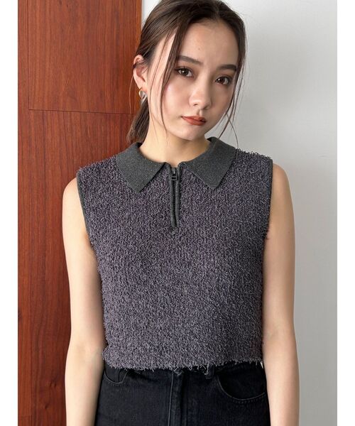 昨年も大人気だったニットトップスが今年も登場■デザインループヤーンの一種ですが通常よりもループが長いフリンジの様な糸を使用しています。そのため糸の存在感があり一枚でも映えるアイテムになっています。糸自体は柔らかく、軽くてストレッチ糸も入っているので伸縮性があり着心地が良いのが特徴です。襟やリブ部分はストレート糸を使用しコントラストのある仕上がりにしています。■スタイリングクロップド丈なのでハイウエストのボトムと合わせて頂くのがおすすめです。デニムやスカートなどカジュアルでもレディライクでも合わせやすいデザインです。※着用画像はフラッシュの加減で実際の製品と色味等が異なる場合がございます。※ご利用の端末画面の設定により実際の商品と色味が異なる場合がございます。【商品特徴】透け感:なし伸縮性:あり生地の厚さ:普通サイズ感:細身裏地:なしポケット:なし【トクする便利機能】♡商品のお気に入り登録再入荷時、ラスト1点の時、セール開始時にお知らせします。♡ブランドのお気に入り登録新商品や再入荷、セール情報など、ブランドのお得な情報を受け取ることができます。是非ご活用ください!