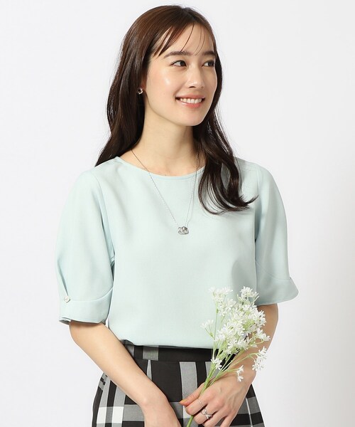 【デザイン】タックを入れた袖が大人可愛いデザイン。袖口のパール調ボタンがさりげない華やかさをプラスしてくれます。タックインもアウトもバランスよく決まるすっきりめのシルエットと、コンパクトな着丈の長さです。【スタイル】ジャケットにも合うサイズ感で、テーパードパンツやタイトスカートと合わせたお仕事スタイルに好相性。デニムと合わせてカジュアルダウンさせるスタイリングもおすすめです。同色同素材のワイドパンツ(741‐68044の027・052・094カラー)とセットアップとしても着用していただけます。【素材・機能】シワになりにくく、さらっと快適な麻調素材。洗濯機OK。イージーケアー機能付き。リサイクルポリエステルを使用した環境にやさしい商品です。※ポリエステルの一部にリサイクル糸を使用しています。※照明の関係により、実際よりも色味が違って見える場合があります。また、パソコン・スマートフォンなどの環境により、若干製品と画像のカラーが異なる場合もございます。モデル情報:身長166cm B81 W57 H86 着用サイズ:02(M)店舗へのお問い合わせ商品番号:741-88044●製品寸法:02(M):着丈58cm B102cm 袖丈29cm 肩幅37cm03(L):着丈59cm B107cm 袖丈29cm 肩幅38cm04(LL):着丈60cm B112cm 袖丈30cm 肩幅39cm備考: