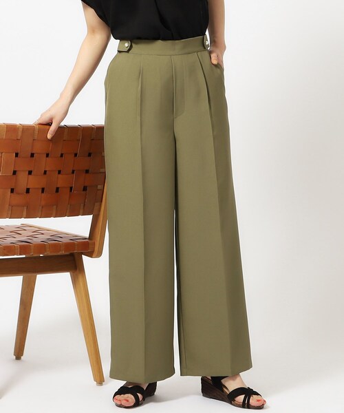 パール調釦が華やぐ麻調ワイドパンツ 【デザイン】 ウエストにパール調釦をあしらったタブ付きのワイドパンツ。 センタープレス入りで、脚長見え効果があるのも嬉しいポイント。 ウエスト後ろ部分はゴム仕様なので、きちんと見えしながらも楽に穿いていただけます。 ※ポケット数:横×2 後ろ(ダミー)×2 【スタイリング】 サマーニットやTシャツ合わせでカジュアルな着こなしに。 センタープレス入りなのできれいめなスタイルにマッチするので、オフィス使いにもおすすめ。 同色同素材のブラウスもお作りしておりますのでセットアップの着こなしもお楽しみいただけます。 ※セットアップ可能アイテム 741-88044(027カラー、052カラー、094カラー) 【素材】 シワになりにくく、さらっと快適な麻調素材。 イージーケアー機能付き。 リサイクルポリエステルを使用した環境にやさしい商品です。 ※ポリエステルの一部にリサイクル糸を使用しています。 ※ベージュ(052カラー)のみ7分丈の裏地あり(ポリエステル100%)。やや透け感があります。 ※照明の関係により、実際よりも色味が違って見える場合があります。また、パソコン・スマートフォンなどの環境により、若干製品と画像のカラーが異なる場合もございます。※スタジオ画像とロケ画像はそれぞれ、照明や太陽光の関係により実際よりも色味が違って見える場合があります。(実際のお色味に近いのはスタジオで撮影した画像です) モデル情報:身長166cm B81 W57 H86 着用サイズ:02(M) 店舗へのお問い合わせ商品番号:741-68044 ●製品寸法: 02(M):W68~93cm H103cm 股下67cm 前股上30cm 渡り幅33cm 裾幅28cm 03(L):W71~96cm H106cm 股下68cm 前股上30cm 渡り幅35cm 裾幅29cm 04(LL):W74~99cm H109cm 股下69cm 前股上31cm 渡り幅36cm 裾幅30cm 備考: