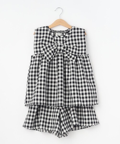 【デザイン】 上下でセットアップでも、別々でも着回し力のあるセットアップアイテムです。 トップスは夏に向けて活躍するノースリーブデザインで、フロントはリボンのようなディティールが可愛いポイントに♪ ボトムはリラクシー感のあるゴム仕様のキュロットタイプで、スカート見えするフレアなシルエットがガーリーな着こなしになります。 ※ポケットなし 【素材】 柔らかい風合いの先染めチェック素材です。 ※パンツのみ裏地あり ※こちらの商品はやや透け感があります。 ※照明の関係により、実際よりも色味が違って見える場合があります。また、パソコン・スマートフォンなどの環境により、若干製品と画像のカラーが異なる場合もございます。 店舗へのお問い合わせ商品番号:122-58054 ●製品寸法: 11(110cm):ブラウス着丈42cm ブラウスB66cm ブラウス肩幅26cm パンツW42~70cm パンツH76cm パンツ股下8cm パンツ前股上22cm パンツ渡り幅31cm パンツ裾幅36cm 12(120cm):ブラウス着丈45cm ブラウスB71cm ブラウス肩幅28cm パンツW44~72cm パンツH78cm パンツ股下10cm パンツ前股上24cm パンツ渡り幅35cm パンツ裾幅39cm 13(130cm):ブラウス着丈48cm ブラウスB76cm ブラウス肩幅29cm パンツW46~74cm パンツH80cm パンツ股下11cm パンツ前股上25cm パンツ渡り幅38cm パンツ裾幅42cm 14(140cm):ブラウス着丈51cm ブラウスB80cm ブラウス肩幅30cm パンツW48~76cm パンツH82cm パンツ股下12cm パンツ前股上26cm パンツ渡り幅41cm パンツ裾幅45cm 備考: