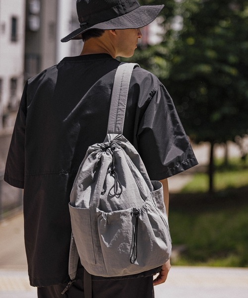 トレンドのドロストデザインのリュック。 口が大きく開くので、荷物を出し入れしやすいのも嬉しいポイント。 マチがあり、外側と内側にポケットが付いているので、収納力も抜群です。グレーとブラックはナイロン素材で、アイボリーとベージュは綿素材でご用意しました。 シンプルなデザインと軽さが魅力のアイテムで、ユニセックスでお使いいただくのもおすすめ。