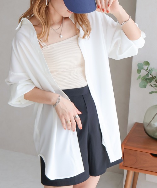 ぶかっと羽織ってこなれ感! ■design・pointサラッと快適な着心地のBIGシャツ。・UVカット&吸水速乾機能がイベントにもピッタリ!・汎用性の高いレギュラーカラー。・こなれた雰囲気に導くラウンドカット裾。・オーバーサイズでゆったりとした着用感。・リラクシングなドロップショルダー。・ワイドなアームホールで軽い羽織りとしても。・着脱簡単なフロントボタン仕様。・BIGな身幅でルーズな印象ながらもカフスタックとバックスタイルにボックスタックを施し、シャツらしさのあるきちんと感もプラス。■fabricUVカット&吸水速乾機能がうれしい柔らかとろみ素材落ち感のあるとろみ素材でさらりとした肌触り。型崩れしにくくお手入れも簡単。春から秋まで紫外線が気になる季節にぴったりな素材。■coordinate・オーバーサイズなのでボトムスは細身のアイテムがバランスが取りやすく好相性。・デニムアイテムと組み合わせて爽やかカジュアルに。・キャミワンピやタンクトップの上から羽織って季節感漂うリゾートコーデもオススメです。※ご覧いただいている環境によっては、実際のカラーと異なって見える場合がございます。あらかじめご了承くださいませ。----------■■■もっとお得にお楽しみいただくために■■■【商品のお気に入り登録】再入荷通知や、ラストの通知、セール通知も受け取ることができます。【ブランドのお気に入り登録】新商品や再入荷など、お得な情報を受け取ることができます!※他のキャンペーンにより、期間中に価格が変動する場合があります。※セールは予告なく終了させていただく場合もあります。----------
