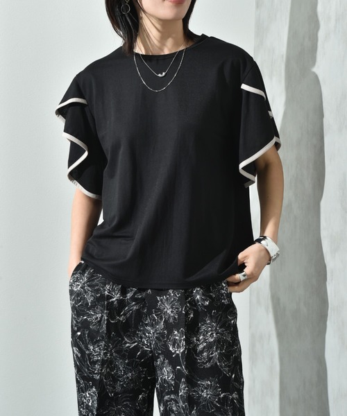 使える!メリット付トップスTシャツ感覚で着まわせ、キレイ目なスタイルにもぴったり!1枚持っているだけで様々な着こなしを楽しめるおすすめなアイテムです。これからのシーズンに嬉しいカット素材を使用。さらに肌に触れるとひんやりする接触冷感のメリット付きも嬉しいポイントです。全体を引き締めてくれる配色は甘くなり過ぎず、オトナ可愛く着ていただけます。袖はケープ風のフレアースリーブにし、立体的なシルエットも魅力です。デイリーにデニム、きれい目にテーパードパンツやスカートでオフィススタイルなど着回し力は最強です。■取扱いご自宅でイージーケア(手洗い)ができます。INTERPLANET/actuel(インタープラネット/アクチュエル)・conceptいつだって私らしく、私自身のスタイルが決まる。。。時代や年齢に媚びない『らしさ』を纏って生きる女性へ。旬なベーシックと抜け感のあるカジュアルをMIX。そんな大人カジュアルコーデを提案します。・お気に入りの登録についてショップ、ブランドのお気に入り登録でクーポンやタイムセールの通知などお得な情報を受け取ることができます♪また、気になるアイテムのお気に入り登録でセールや再入荷の通知など受け取ることができます。