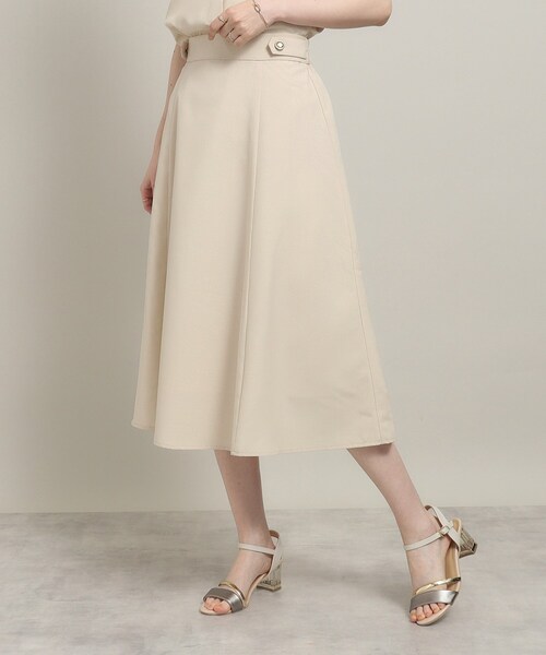 【デザイン】 ラクしてきれい見えが叶う、嬉しい機能付きの麻調合繊シリーズが登場です♪ これからの時期にぴったりの清涼感ある麻風のポリエステル素材。 さらりとした肌触りとシャリみのある風合いが、汗ばむ夏でも快適に過ごせる生地感です。 ※ポケットなし ~嬉しい4つの機能~ 1UVケア 2お家でお洗濯OK 3吸水速乾機能で洗濯後の乾きも早く時短 4イージーアイロン素材で洗濯後のお手入れもらくらく ※この製品は、太陽光線中の紫外線(UV)を通しにくくします。この効果は永久的ではありません。 ※この製品は吸水速乾効果のある素材を使用しています。この効果は永久的ではありません。 ウエストのサイドベルトデザインがポイントのフレアスカート。 トップスをINした時もコーディネートのアクセントになります。 シンプルで着まわし易く、オフィススタイルのボトムとしても大活躍! 後ろウストはゴム仕様になっているので着脱しやすく、着心地らくちん♪ ブラウス【P93-58520】とセットアップで着用可能です。 【素材】 さらりとした肌触りで清涼感のある麻調のポリエステル素材。 ※裏地あり ※こちらの商品はやや透け感があるため、インナーの着用をおすすめします。 ※照明の関係により、実際よりも色味が違って見える場合があります。また、パソコン・スマートフォンなどの環境により、若干製品と画像のカラーが異なる場合もございます。 モデル情報:身長166cm B80 W59 H85 着用サイズ:00(フリーサイズ) 店舗へのお問い合わせ商品番号:P93-68514 ●製品寸法: 00(フリーサイズ):W66~70cm H90cm 総丈79cm 備考: