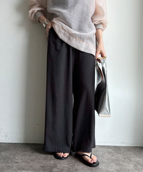 ■2024 SPRING & SUMMER ITEM■履き心地に癒されるワイドパンツ縦にも横にも伸びのいい、2wayジョーゼットの素材を使用したイージーパンツ。ワイドシルエットでありながらもすとんと落ちるきれいなシルエットが魅力的です。ゆったりと脚のラインを拾わず、ウエストはオールゴムで履き心地が楽ちん。ドロスト仕様で幅広い体型の方にフィットするのも嬉しいポイントです。ワードローブに1着は持っておきたい、おすすめのワイドパンツです。- POINT -・ポリエステルでシワになりにくい・ドロスト仕様でウエスト調整が楽・丈感の違う2サイズ展開--------------------------------洗濯:手洗い可能裏地: なし透け感:なし伸縮性: ややあり光沢感: ややあり--------------------------------【 ♡ をクリックでお得な情報をお知らせいたします 】〈 商品のお気に入り登録 〉 お気に入りアイテムのお値下げ・再入荷・在庫ラスト1点など通知を受けることができます。〈 ブランドのお気に入り登録 〉DOUDOUの新商品や再入荷、セール、クーポン配布などお得な情報を受けることができます。--------------------------------------※ 生産の都合上、お届け時期が前後する場合がございます。※ 掲載画像の商品の色味は、 撮影場所や光の当たり具合などにより色味が異なって見える場合がございます。 また、お客様のお使いのPC・スマートフォン等のモニター環境などにより色味が異なって見える場合がございます。予めご了承の上ご注文ください。 ※ 着用、お取り扱いの際は、商品についている品質表示とアテンションタグを必ずご確認下さい。