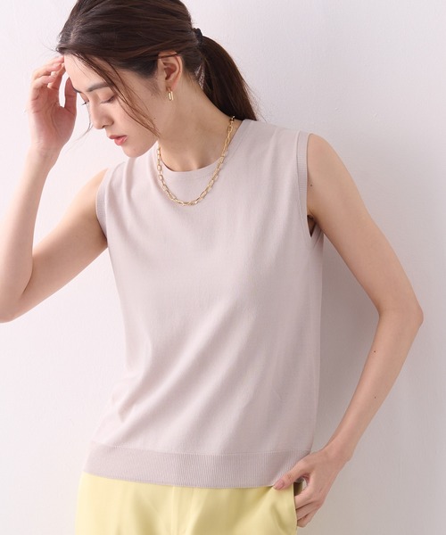 《心地よく着られるソフトな肌触り》 装飾を省いてシンプルにまとめたノースリーブのニットプルオーバー。 ハイゲージメリヤス編みでなめらかな表面感に仕上がり、上品に着こなせます。 盛夏の一枚着としても、インナーとしても便利なアイテムです。 【デザインポイント】 ・ジャケットインに着用していただけるノースリーブニットです。 ・暑い季節もインナーとして着ていただけます。 【機能】 ・夏に涼しく着ていただける接触冷感加工をしています。 ・手洗いにてお洗濯可能です。 ----------------------------- 透け感:あり 縮性:あり 裏地:なし 光沢:なし ポケット:なし ----------------------------- 【スタイリング】 ・開きすぎずつまり過ぎない丁度良いネックラインなので合わせるものを選びません ・一枚着はもちろん、レイヤード スタイルのインナーにもおすすめ◎ ・ジャケットのインナーとしても大活躍 ・もたつかずピタピタしすぎないちょうど良いシルエットで着回し力抜群! ・キレイ目なタックパンツからデニムまで幅広いボトムとの相性◎ 【カラーバリエーション】 ・オフホワイト(白)...オフホワイトは通勤やお仕事にぴったりのきれい見えカラーです ・ブラック(黒)...1枚着として着るならブラックは着やせして、ボトムも選びません ・ライトグレー(灰)...ニュアンスカラーのライトグレーは女性らしいおしゃれカラーです 【サイズバリエーション】 ・Mサイズ(9号相当) ・Lサイズ(11号相当) モデルはMを着用しています。 【ブランド紹介】 A/C DESIGN BY ALPHA CUBIC通勤時やオフィスで、学校行事や“おうちの用事”などのオケージョンで、女性が気張らずに心地良くいるための服を提案するA/C DESIGN BY ALPHA CUBIC。 1枚のブラウスが時には仕事着となり、時には公園で散歩する普段着となる、そんなシーンを選ばない上質なスタンダードアイテムや、トレンドを取り入れた旬なアイテムをご用意しています。 【お買い物をお得にもっと楽しんで頂くために】 ▼商品のお気に入り登録▼ 完売カラーの再入荷通知や、ラスト1点の通知、プライスダウンしたセール通知も受け取ることができます。 ▼ブランドのお気に入り登録▼ 新作や再入荷等、いち早くブランドのお得な情報を受け取ることができます!