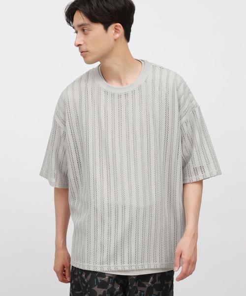 トレンド感のあるレース素材とシンプルなカットソーの2枚セットアイテム。ゆったりとしたシルエットでリラックス感があり涼しげな着こなしができます。2枚重ね着はもちろん他のアイテムと合わせにも使えます。透け感があるので下に重ねるアイテムによって表情が変えられるので無地はもちろん柄物を合わせても。ユニセックスでの着用もおすすめです。【スタイリング】フェミニンな雰囲気なのでキレイ目なアイテムを合わせるとまとまります。