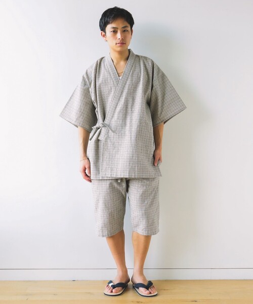 お家時間にサラリとした肌触りが心地いい ■デザイン 日本の伝統的な甚平を現代的にアレンジした、適度にゆとりのあるすっきりとしたシルエットが特徴。 お家でのリラックスタイムはもちろん、ちょっとしたお出かけにもなじむデザインで、父の日の贈り物としても喜ばれます。 ■別注ポイント しじら織や藍染など阿波の伝統工芸を扱う〈長尾織布(ナガオオリフ)〉で別注製作。 ■素材 しじら織の生地は、糸の張力差を利用した独自のシボ感(凹凸)が特徴。 凹凸が肌との接触を少なくし、空気をよく通すため、非常に涼しくサラリとした着用感を実現。見た目も軽やかで吸湿性にも富み、日本の蒸し暑い夏にぴったりの素材です。 ■ケア方法 弱い水洗い・弱いドライクリーニング両方可 (詳細は商品についている品質表示ラベルをご覧ください) ■注意事項 ・染料の性質上色落ちしますので他のものと一緒に洗わないでください。 ・生地の性質上多少縮むことがあります。 ・漂白剤は使用しないでください。 ・洗濯機の弱水流又押し洗でお願いします。 ※撮影環境による光の当たり具合やパソコンなどの閲覧環境によって実際の色味と異なって見える場合がございます。予めご了承ください。 ※商品の色味は商品単体で撮影した画像をご参照ください。 長尾織布 / ナガオオリフ 1897年綿織物の製造業で創立以来、しじら織や藍染などの製造を中心に阿波の伝統工芸を伝えています。染めから織り、仕上げまで全工程を一貫作業で手掛けております。