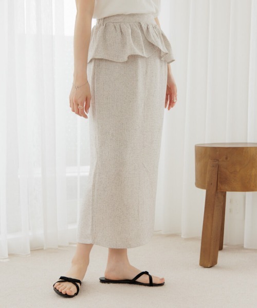 ■デザイン花びらのようにふんわり重なるペプラムと、すっきりシルエットが女性らしいスカート♪軽くてサラッとした手触りのサマーツイード素材を使用したペプラムデザインのスカートです。ペプラム丈を短めに設定しているのでガーリーな印象に仕上がり、なおかつスタイルアップ効果が期待できます♪きれいめアイテムながら後ろにはゴムが入っている為締め付け感が強すぎないのも嬉しいポイント!Whiteにはブラック系、Beigeにはホワイト系の糸が一緒に織られていて、表情のある生地なので単調にならず抜け感のある雰囲気に♡デイリー使いやデートにぴったりなアイテムです。トップスの裾をスカートインして、ペプラムを引き立たせたコーデが◎paiting flower Tsと合わせるとさらに抜け感が加わりflowerらしいコーディネートが完成します♡■flower/フラワー「love&joy」をコンセプトに、商品に愛を込め、お客様に楽しんでいただけるような、ナチュラルでガーリーなアイテムを提案していきます。【お買い物を上手にお楽しみいただくためのPOINT2つ】◎ 購入ボタン横の ♡ (ハートマーク)をクリック! 完売カラーの再入荷通知、残り1点の通知、セールの通知を受け取れます。 (クリックまたはタップで商品のお気に入り登録♪)◎ ショップのトップページにある ♡ (ハートマーク)「お気に入りショップに追加」をクリック! 新商品や再入荷等、いち早くブランドのお得な情報を受け取れます。 (ブランドのお気に入り登録♪)